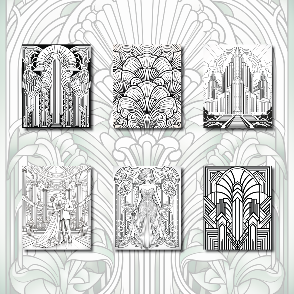 Unleash your creativity as you breathe life into these elegant art deco coloring pages! Each page boasts a finely detailed greyscale image, adding depth and dimension to your coloring.