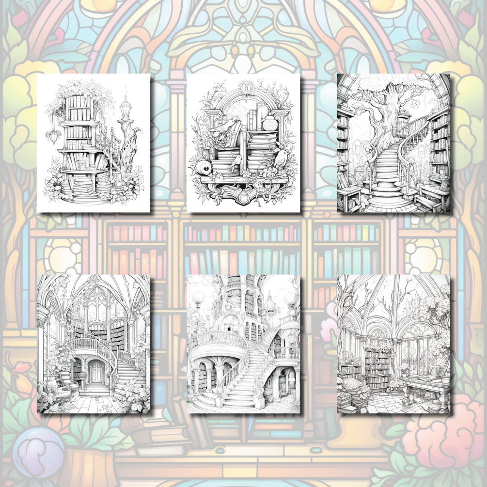 Unleash your creativity as you breathe life into these beautiful enchanted library coloring pages! Each page boasts a finely detailed greyscale image, adding depth and dimension to your coloring.