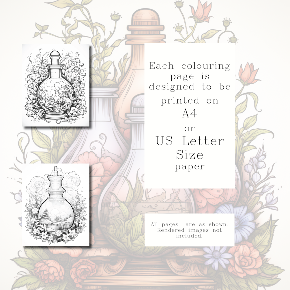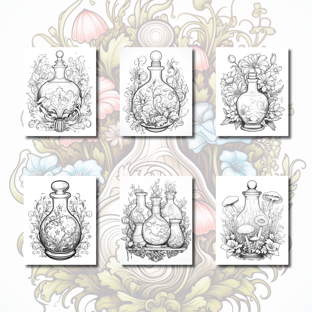 20 digital downloadable magic potion coloring sheets